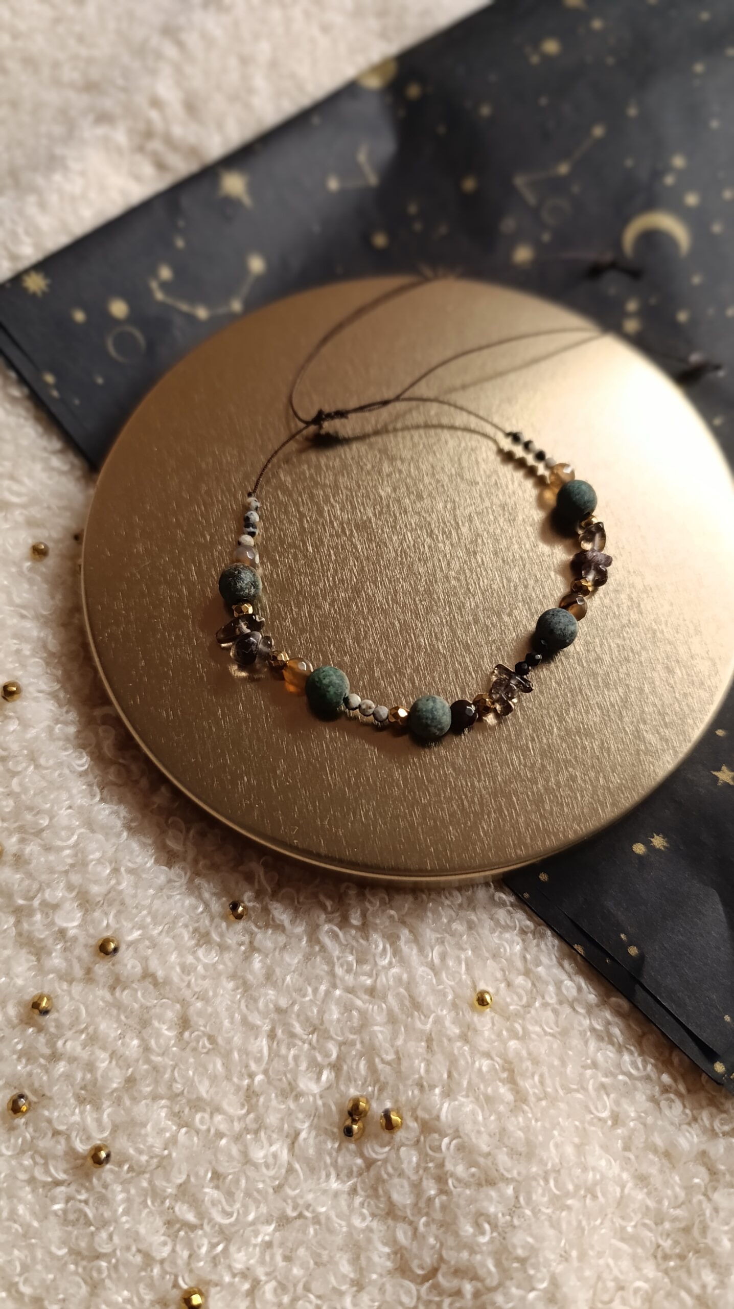 Ta bransoletka została stworzona z połączenia trzech wyjątkowych kamieni, które razem tworzą harmonijną, naturalną kompozycję: